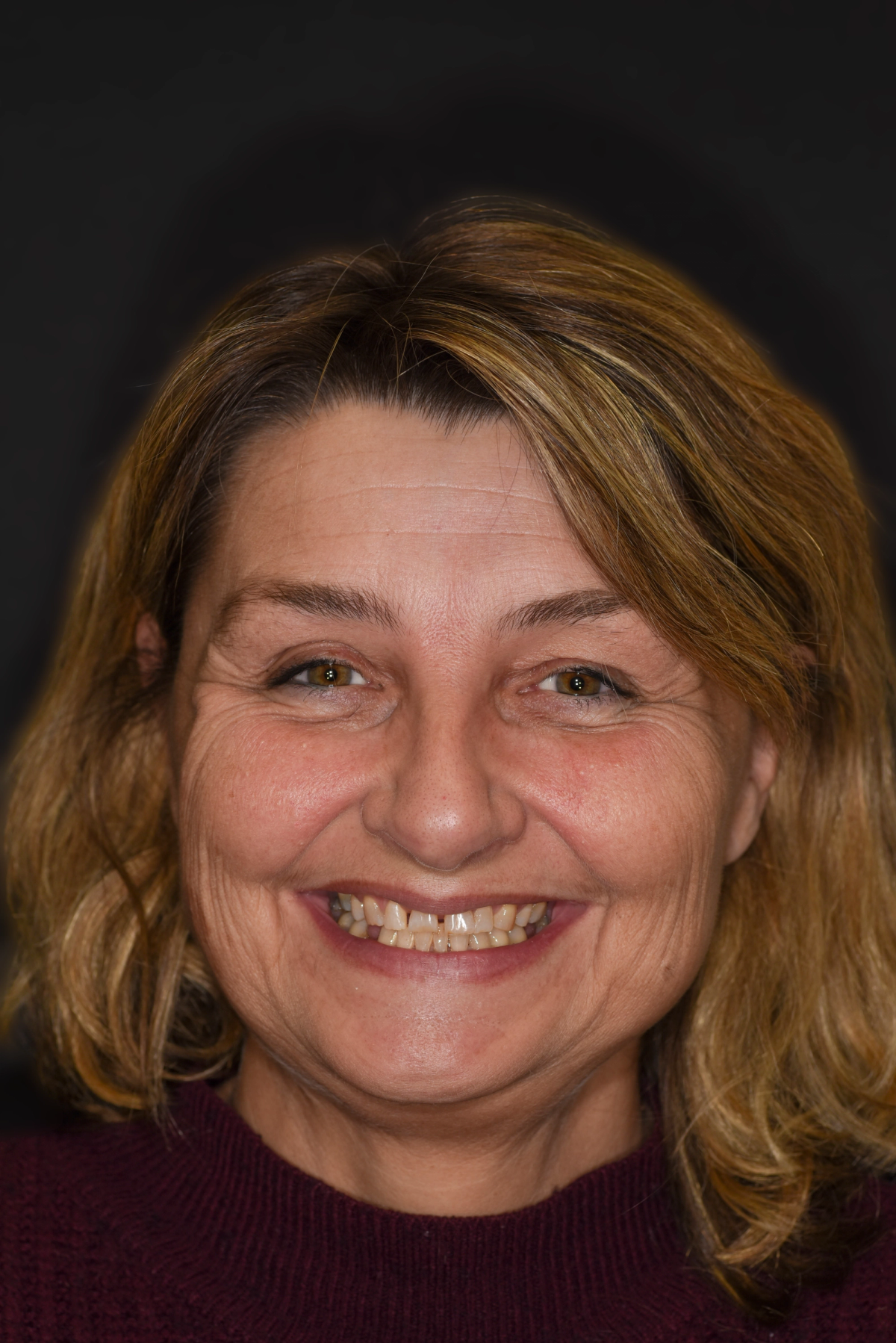 Etter en konsultasjon kom vi frem til at tannregulering og estetiske kroner var riktig tilnærming her.